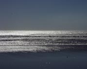 午後陽がかなり傾いてきた頃、逆光のなか海を撮った。まさに光の海、銀の海に変化した。