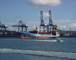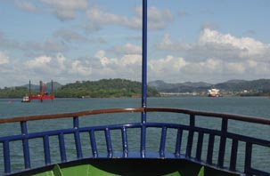 太平洋側から、パナマ運河のゲートウェイであるラス・アメリカス橋をくぐるとすぐに商業港の