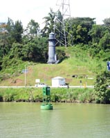 5. 「半日パナマ運河通航遊覧」の下船場であるガンボア手前にある運河沿いのライト・ビーコン。 [拡大画像: x18835.jpg]