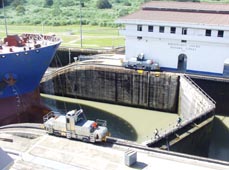 われわれの遊覧船はまず水位の低い(太平洋の水位と同じレベルの)第一閘室に入った。