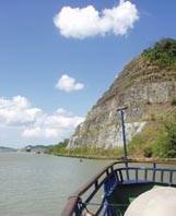 船は、運河開削工事の難所であったクレブラ・カット(Culebra Cut)を通過している。