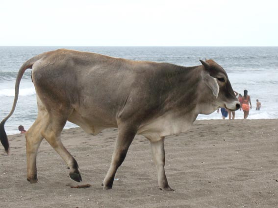 牛もたまには海辺を散歩したい? [中米ニカラグア]