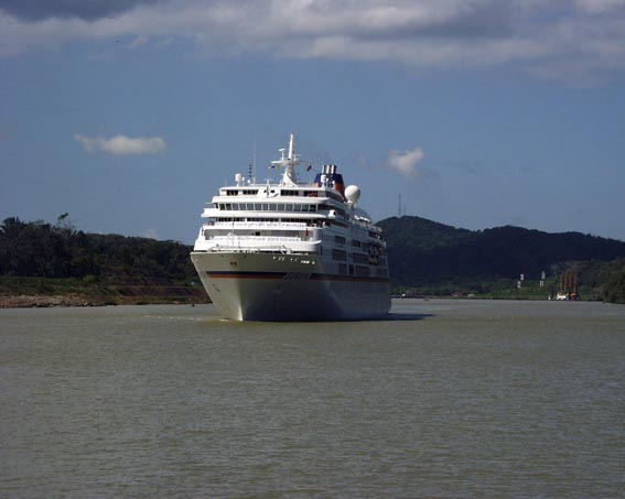 クレブラ・カットを通過中の豪華客船 [パナマ運河]