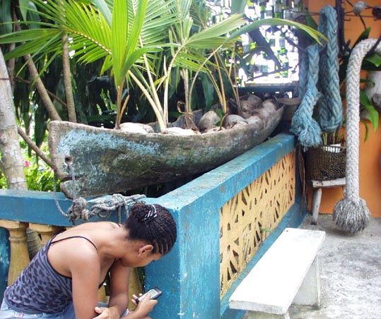 カリブ海岸辺のレストラン「錨」 [3]/丸木舟の植木鉢 [パナマ]