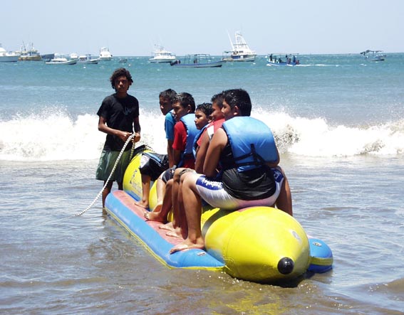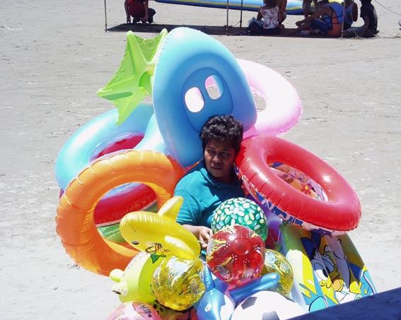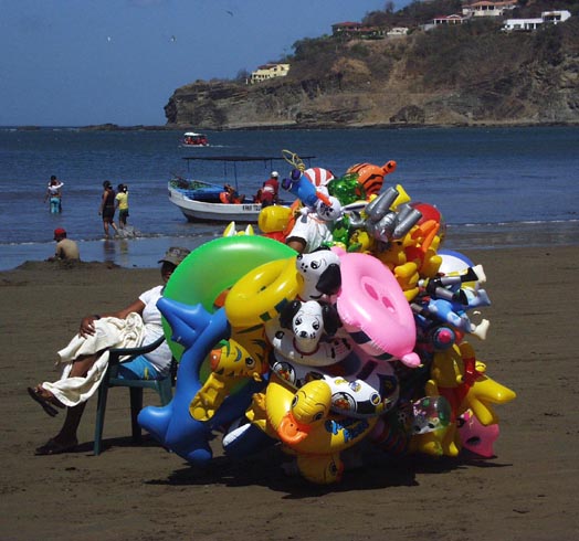海辺で浮袋を売り歩く人 [2] [中米ニカラグア]