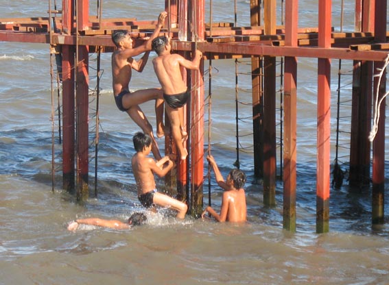 マナグア湖畔 (Malecon地区) で戯れる少年たち [中米ニカラグア]