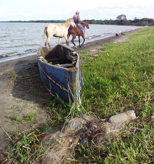 ニカラグア湖畔にて [3]/人馬と木舟 [中米ニカラグア]