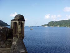 2. 要塞の最奥にある見張り楼。その向こうにはコロンブスが第4回航海で停泊したとされる入り江が広がる。