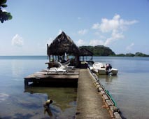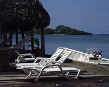 レストランの裏庭にある椰子の木々をくぐり抜けるとすぐに海辺に出る。そこにちょっとした板張りの桟橋があって、