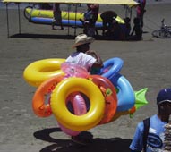 浮き袋を抱え込んで大人は大人で売り歩き、子供は子供で売り歩く。