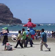(Semana Santa)」の頃は夏のバケーションの真っ最中で、大勢の海水浴客でごった返す。海岸では若者たちが