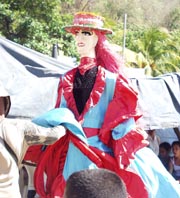 別の背丈が高い人形1体と案山子のような背丈が低い人形1体が何処からともなく現れ練り歩く。