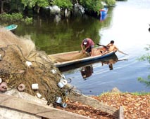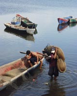 子供は何もしないでカヌーの艫(とも)にだらしなく横たわり、親が黙々と網整理するのをただ呆然と