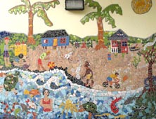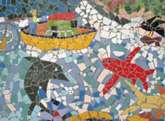 モザイク画がある。魚、タコ、サメ、クジラなどや、船に乗った子供がそれらを眺めて楽しんでいる絵である。