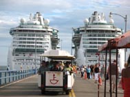 1. 停泊中の左の船が「Radiance of the Seas」号(radianceとは「輝き」の意で、「海の輝き」号)、右の船が「Serenade of the Seas」号である。