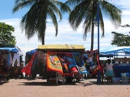 2. 大桟橋のある海岸通りには数多くの土産物売りの露天商が立ち並ぶ。コスタリカン・カラーに彩られた布地が潮風に揺れる。
