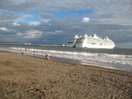 プンタレナスの大桟橋に大型クルージング客船が停泊する。船名は「Serenade of the Seas」号である。