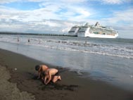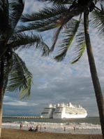 プンタレナスの大桟橋に停泊する2隻のクルージング客船。停泊中の左の船が「Radiance of the Seas」号(radianceとは「輝き」の意で、