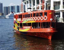 このフェリーは随分とカラフルである。ハーバー縦断の道路専用トンネルもあるが、一般市民・通勤客などの足は今でも
