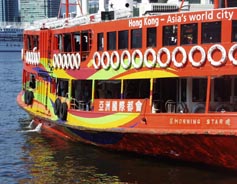 大ビジネス街・中環(セントラル Central)との間のビクトリア・ハーバーを行き来するフェリー (それ以外の地区