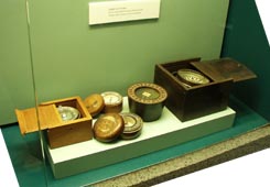 コンパスは古代中国での発明である。マカオ海事博物館にはいくつかの貴重な古代のコンパスが 展示されている。画像のコンパスには24の方位が示され、磁気を帯びた太い針が水に浮かべられている。
