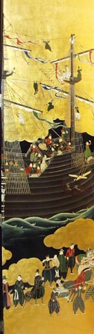 商人たちの取引き、商品の荷降ろし、積み荷として持ち込まれた異国の珍しい動物、日本に居住するイエズス会