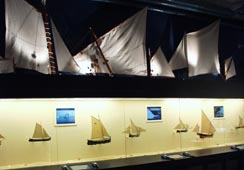 が展示されている。また、いろいろなタイプの帆の模型も展示されている。中でも、この画像にあるような帆をいくつもの桁で