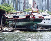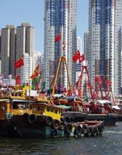 はさんで対面に幅の狭い水路がある。水路は香港島(アバディーン側)と向かいの小さな島との間にある距離4、5km