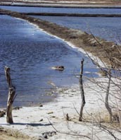 そのすこし手前には、ニカラグアではめずらしい塩田風景が広がる。この「白い世界」は面積にしてわずか数ヘクタールであろうが、