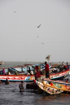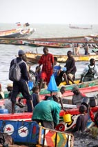 時間行ったところにある町「ムブール (Mbour)」の海辺における魚の水揚げ風景。