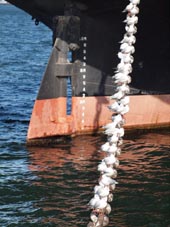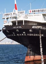 日本郵船・氷川丸のアミーゴ (amigos・友だち) であるカモメたちが船尾係留鎖に仲良く陣取る。
