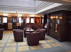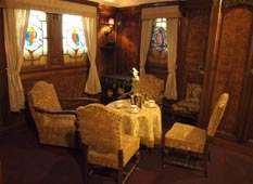 2. 帆船のグラス・アートはこの一等喫煙室の隅っこ(画像左隅)に施されている。この喫煙室は改装が少ないので竣工当時の