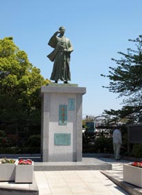 この「勝海舟之像」は東京・墨田区役所の前に建つ(区役所は、東武伊勢崎線が発着する「浅草駅」の前を通り、隅田川に