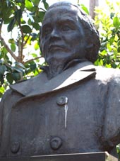 得その後立身出世の大願成就した由来、、、」をもつ能勢妙見堂(別院)の境内に建立された海舟の胸像。