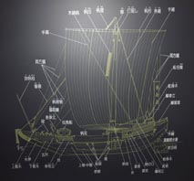 1. 菱垣廻船模型の各部名称図 [拡大画像1: x22153.jpg][拡大画像2: x22234.jpg]