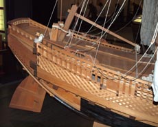 2. 模型全景。船体中央部甲板下の船艙内部構造が分かるように縦断面で示されている。