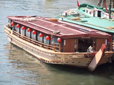 3. 吾妻橋のたもとに横付けされた屋形船。 [拡大画像: x22239.jpg]