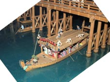 5. 江戸東京博物館では、江戸期における「両国橋とその西詰の広小路」の賑わいを巨大なパノラマ模型にて展示している。