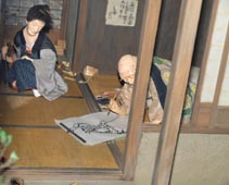6. 北斎の画室Model of Hokusai's studio。北斎の画室を弟子が描いた「北斎仮宅図」をもとに再現したもの。北斎は