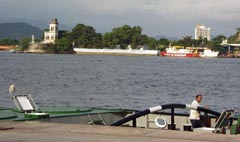 3. サントス港14番埠頭付近から対岸のグアルジャにそびえる灯台を遠望。笠戸丸の接岸の頃からあったのであろうか、