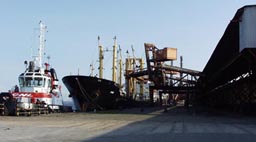 2. 現在のサントス港の14番埠頭付近(2001年11月)。日本からの最初のブラジル移民船「笠戸丸」は1908年に14番埠頭に