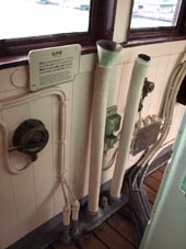 4. 伝声管(voice tube)。航海ブリッジから船長室、機関室、無線室への個々の命令などの伝達用パイプが施されている。