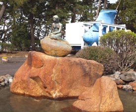 「この人魚姫は、コペンハーゲン市長の好意により、1971年5月29日デンマーク大使臨席のもとに、おくられました」。(出典: