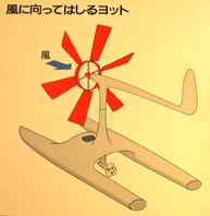 風が正船尾方向から、あるいは正船首方向から、また舷側正横から吹いて来ても、風車の翼や伝動装置などのあらゆる創意