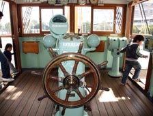 風と帆の状態を見ながら操舵できるよう後部に舵輪が設けられている。しかし、出入港時や狭水道航行時などでは、時に帆を