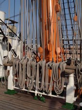 下方の檣楼には帆装上ラバースホールが設けられていないことから、ここを登るには檣楼の下部からファトックシュラウズ