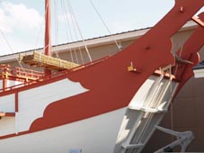 1&2. 遣唐使船全景。二本の帆柱をもつ。右側が船首 [下記の「参考 1」を参照]。 [拡大画像: x22747.jpg][拡大画像: x22748.jpg]