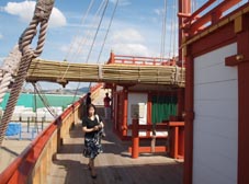 3. 甲板風景。右手前の屋形は「雑居部屋」(下記の「参考 2」を参照)、帆柱の後方に「賄い部屋」、さらにその後方には「遣唐大使の部屋」