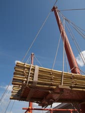 「帆船では船尾に近い所に位の高い人の部屋を設けていました。この遣唐使船でも、三つある屋形の一番