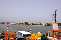 ガンビア川の河口南側には首都バンジュール (Banjul) がある。川幅は広く大海の様相である。